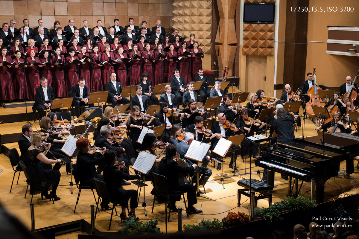 Atunci când fotografiezi un concert de muzică clasică, nu stai pe scena pentru a prinde un cadru mai apropiat cu dirijorul, instrumentiștii sau soliștii, ci trebuie să folosești obiective tele. Știm că pentru a avea o imagine clară atunci când fotografiezi cu un obiectiv tele, timpul de expunere trebuie să fie cel puțin egal cu focala obiectivului (ex: pentru un obiectiv cu focala de 135mm, timpul de expunere trebuie să fie minim 1/125 dacă ai mână mai stabilă sau chiar 1/160; pentru 200mm, 1/200 … ).